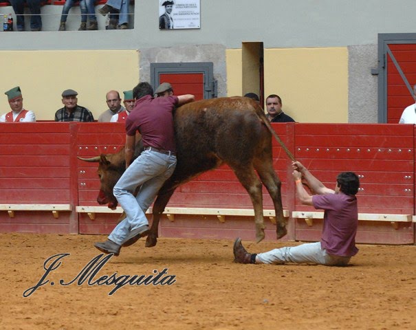 Na primeira tentativa, o Tita não se conseguiu fechar de pernas e acabou por ser despejado sem hipótese de ajuda. Na 2ª tentativa, o toiro entrou pelo grupo como uma bala e depois despeja o Tita com um derrote para baixo já perto das terceiras ajudas. Na terceira tentativa, e com o toiro cada vez a empregar-se mais, enorme par de braços do Tita e o grupo bem a ajudar, em especial o Nélson Lopes cá atrás, a não permitir veleidades. Uma boa pega!